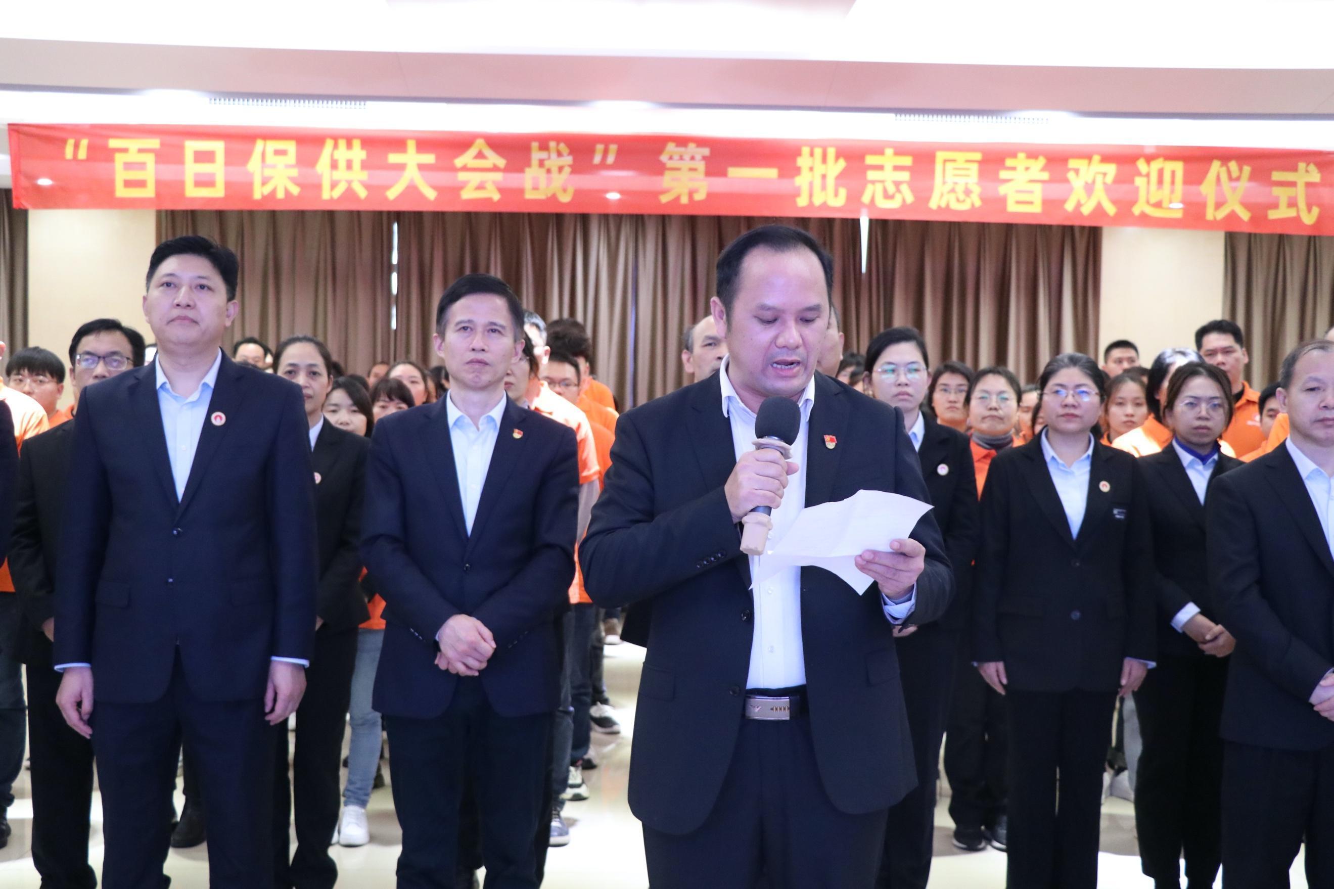 仪式上,海南生产基地生产副总经理李培湖、广西生产基地副总经理郭金华向来自全国各地营销条线的保供志愿者们表示热烈的欢迎,并对他们在关键时刻挺身而出的无私奉献表示感谢。